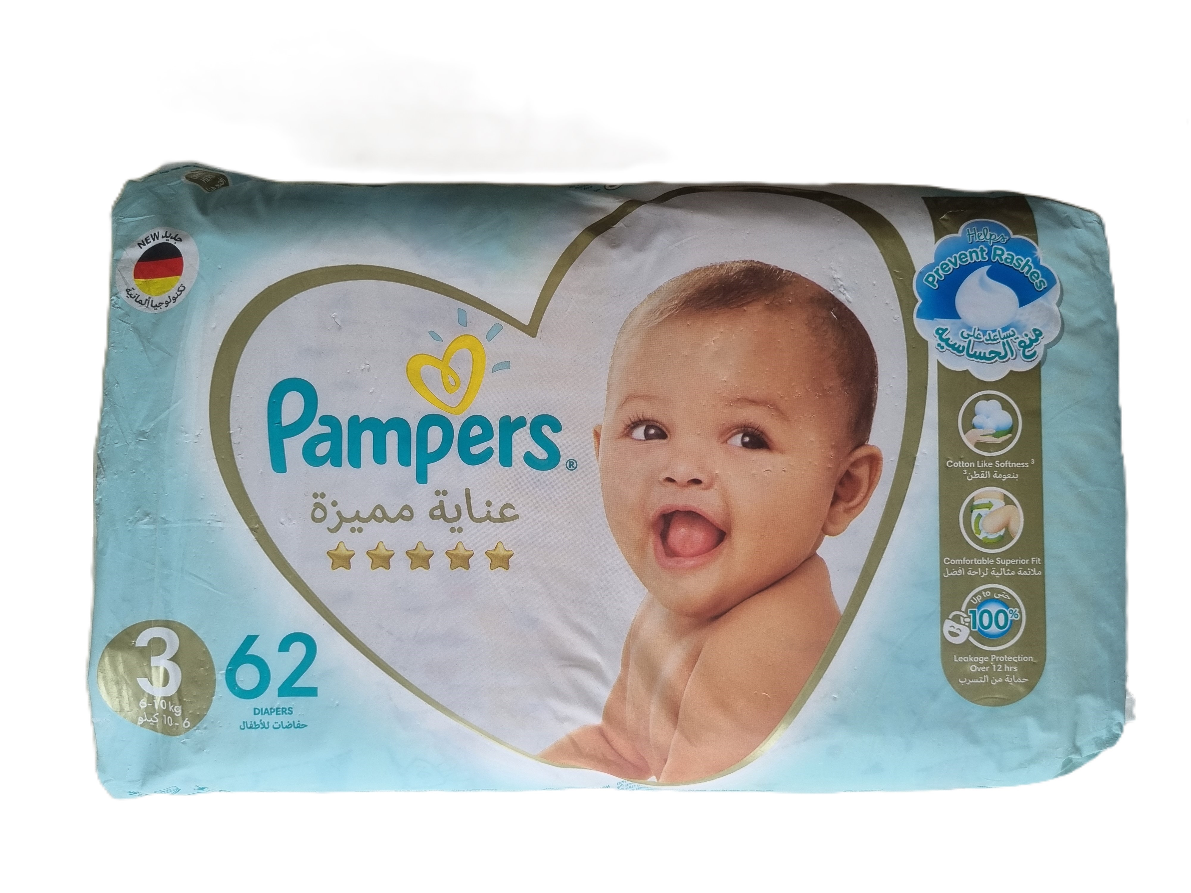 پوشک پمپرز مدل premium care سایز 3 بسته 62 عددی