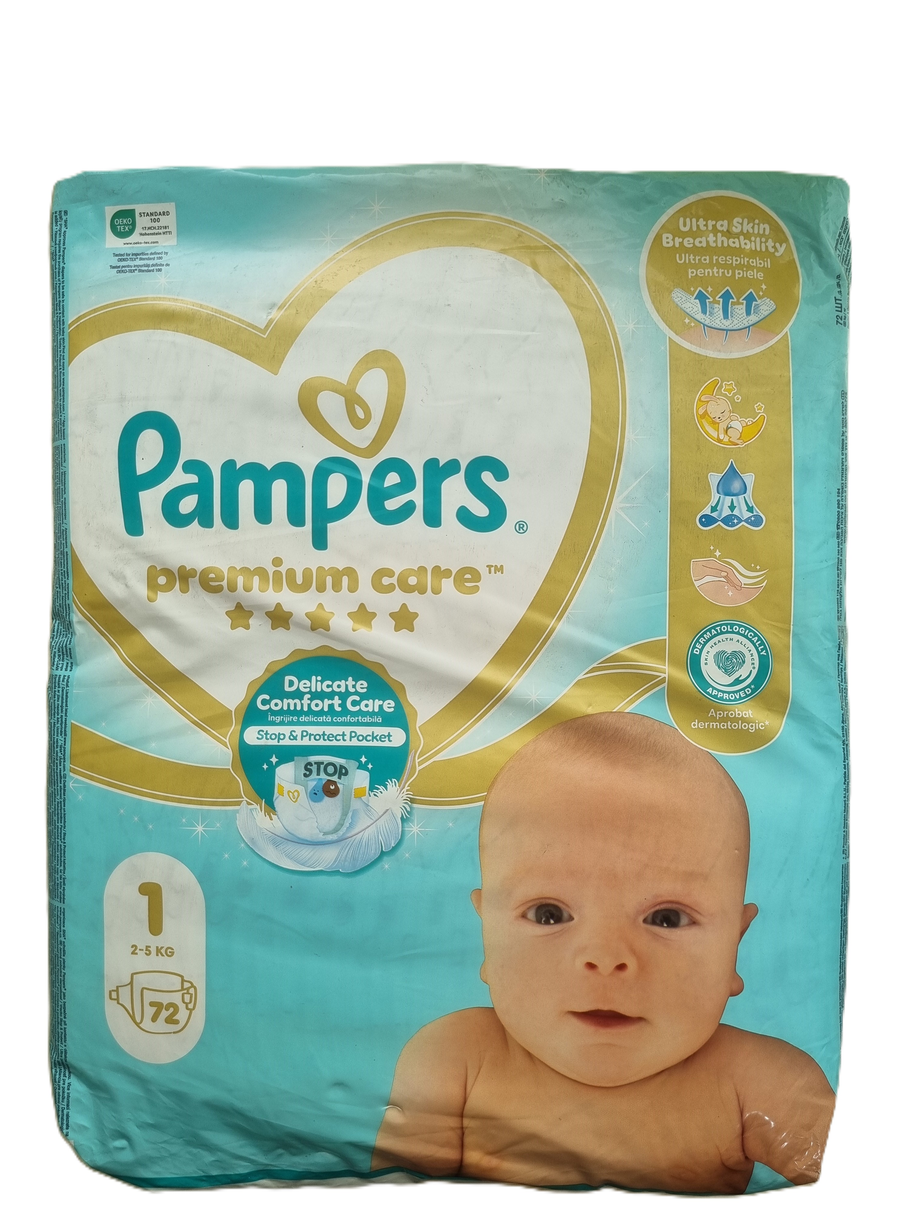 پوشک پمپرز مدل premium care سایز 1 بسته 72 عددی